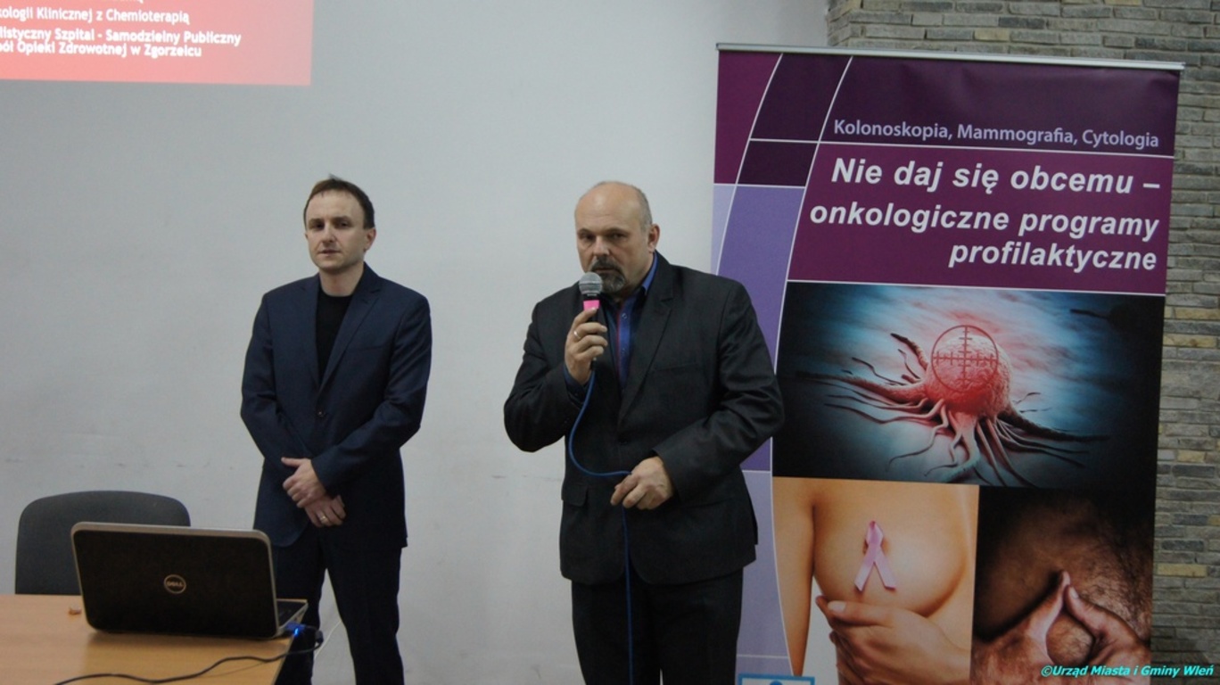Dnia 11 stycznia 2017 r. w Ośrodku Kultury, Sportu i Turystyki odbyło się spotkanie edukacyjno-informacyjne nt. profilaktyki raka jelita grubego, raka szyjki macicy oraz raka piersi. Dlaczego ludzie zapadają na choroby nowotworowe? Jak im zapobiegać? Co robić gdy już się pojawią? Na te pytania odpowiadał ordynator Oddziału Onkologii Klinicznej i Chemioterapii w Wielospecjalistycznym Szpitalu - Samodzielnym, Publicznym Zespole Opieki Zdrowotnej w Zgorzelcu. Spotkanie zorganizowane z inicjatywy Burmistrza Artura Zycha miało na celu pokazanie mieszkańcom Gminy Wleń, jak ważna jest profilaktyka i wczesne wykrycie choroby.