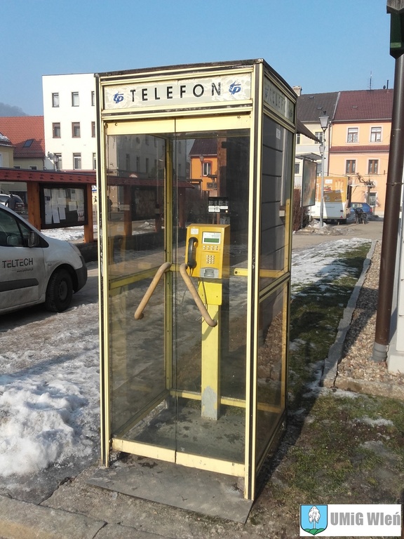 W dniu dzisiejszym zostanie zdemontowana przez firmę Orange budka telefoniczna, która zlokalizowana jest przy Urzędzie Miasta i Gminy we Wleniu. Jest to związane z likwidacją przez Orange tego typu obiektów. W związku z powszechnością telefonów komórkowych i niezliczonych możliwości komunikowania się, z budki tej korzystano niezwykle rzadko.