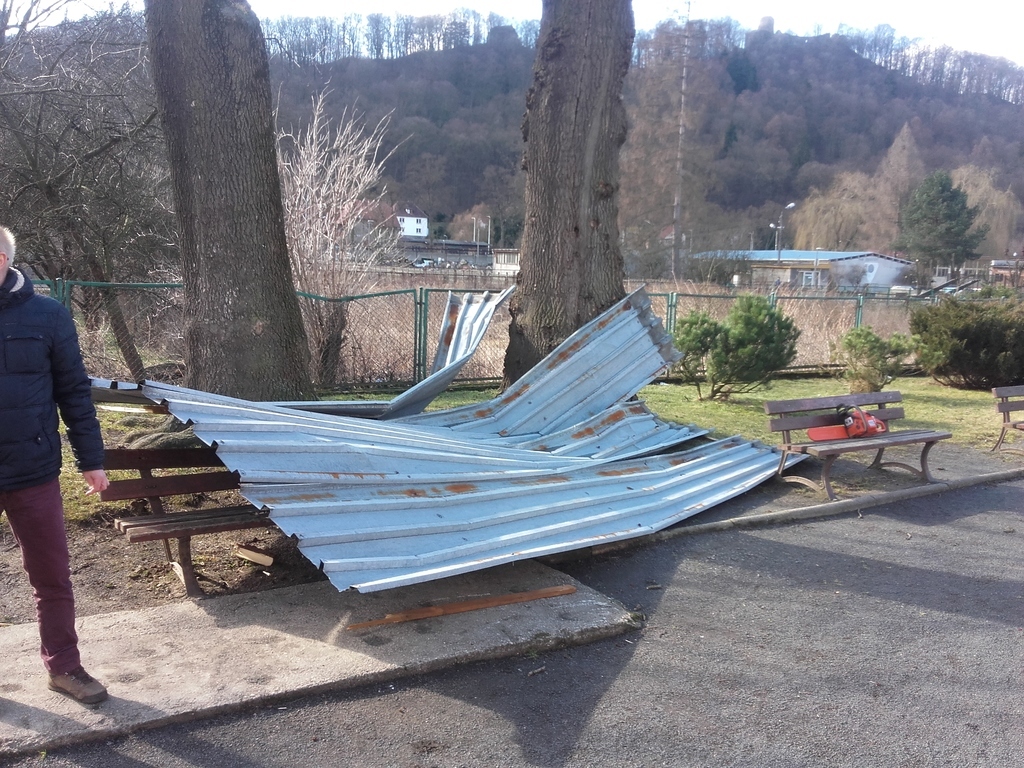 Dzisiejsze podmuchy wiatru przyniosły niestety poważne szkody budynkowi Zespołu Szkół we Wleniu. Wiatr zniszczył pokrycie dachowe hali sportowej oraz uszkodził budynek, w którym zlokalizowane jest przedszkole. W chwili obecnej strażacy OSP Wleń walczą ze skutkami kilkuminutowej nawałnicy.
