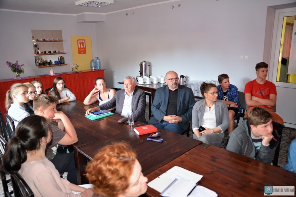 Magdalena Borkowska, Małgorzata Chochorowska- Klocek oraz przedstawiciele młodzieży z wleńskiej szkoły. Pomysł burmistrza Zycha dot. utworzenia Młodzieżowej Rady Gminy Wleń to sposób dla młodzieży na reprezentowanie swoich interesów oraz uczestniczenie i opiniowanie podejmowanych projektów. Dzięki Radzie młodzi poznają także sposób funkcjonowania jednostki samorządowej.