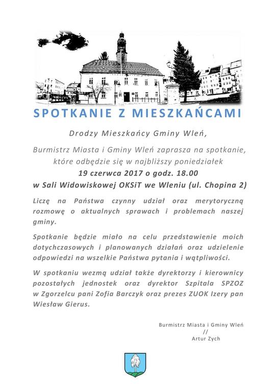 Burmistrz Artur Zych zaprasza Mieszkańców Gminy Wleń na spotkanie.