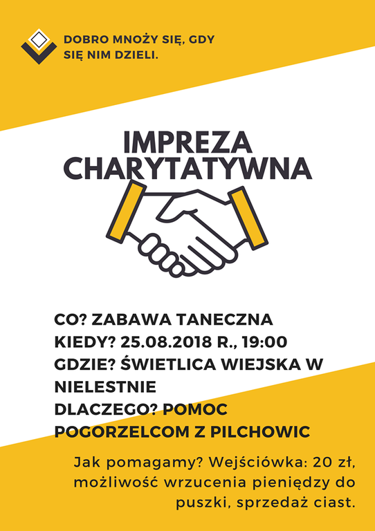 Zapraszamy do uczestnictwa w charytatywnej imprezie, mającej na celu zebranie środków dla pogorzelców z Pilchowic.