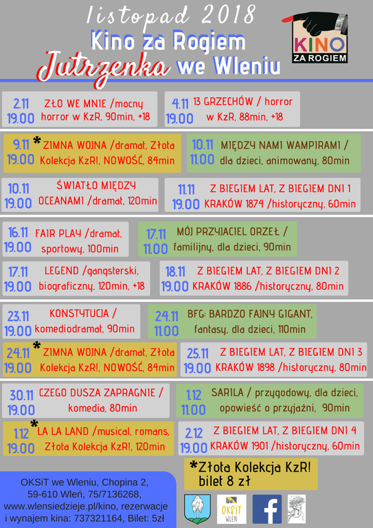 Listopadowy repertuar Kina za Rogiem we Wleniu